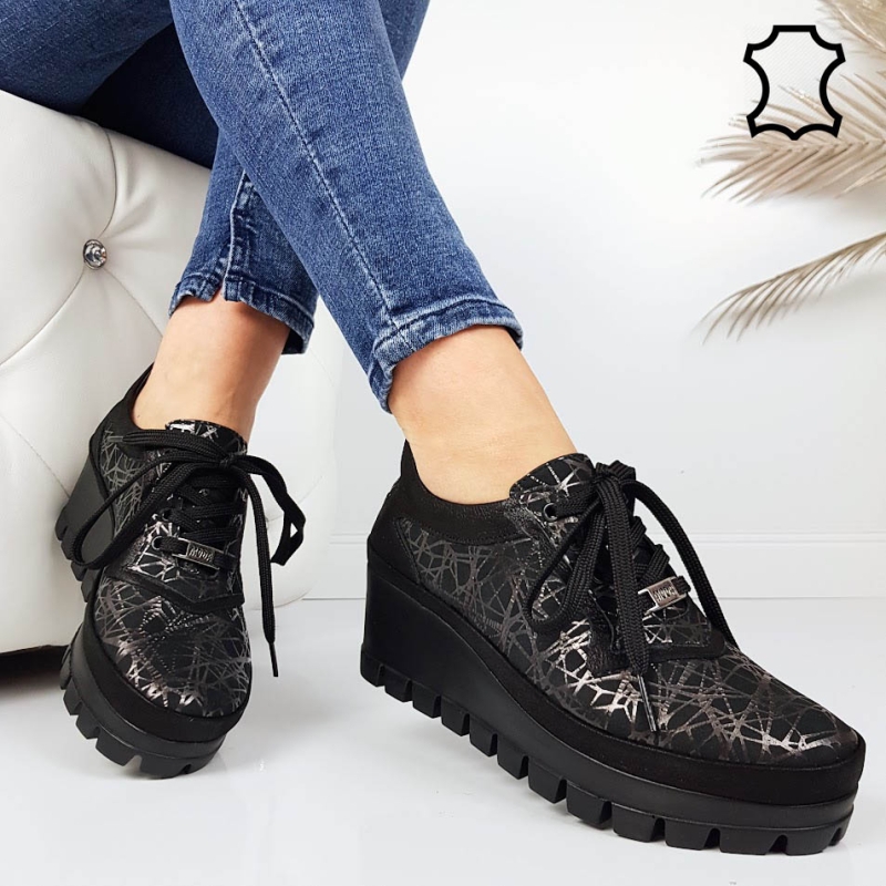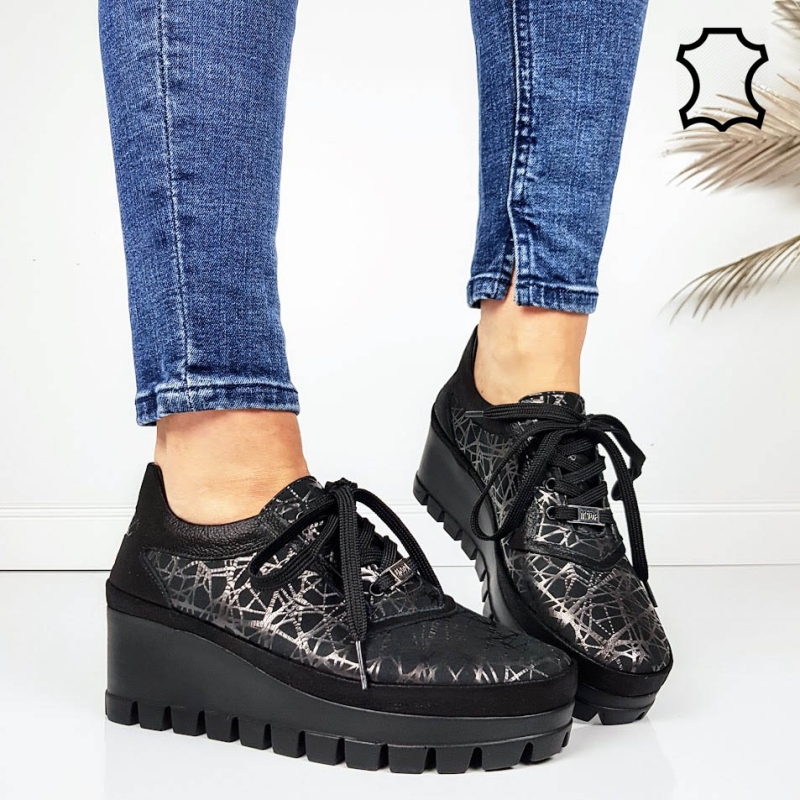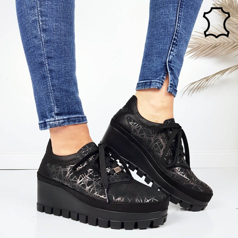 Начало НОВА КОЛЕКЦИЯ ЕЖЕДНЕВНИ ОБУВКИ Черни обувки от естествена кожа с ортопедична стелка- Hana Black 11718
