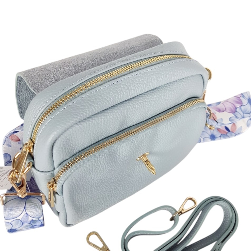 Синя чанта от естествена кожа- Selin Blue 11747