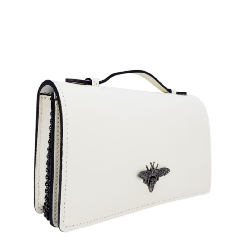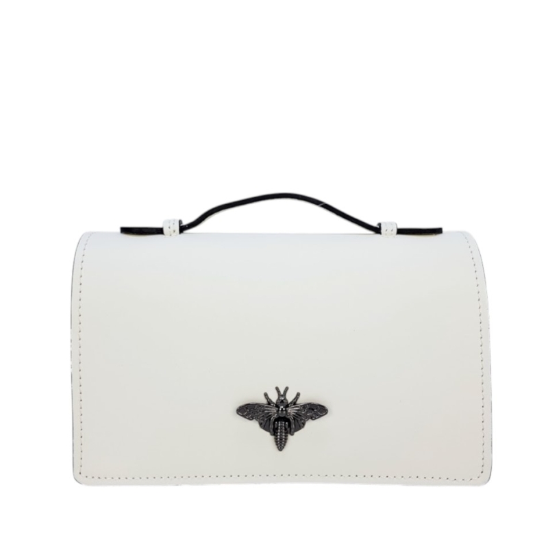 Стилна бяла чанта от естествена кожа- Frea White 11756