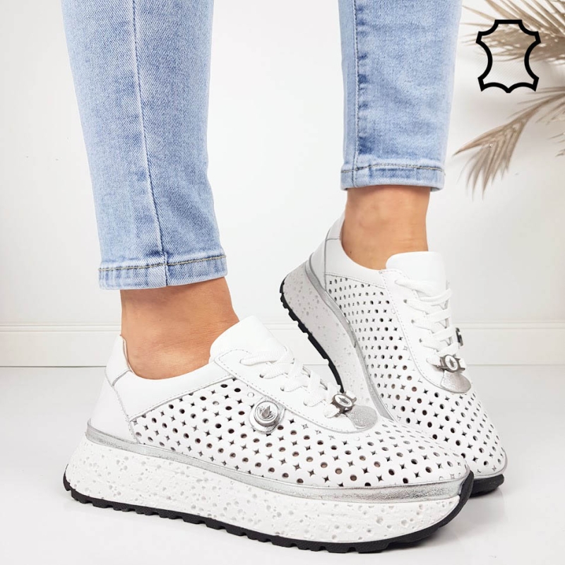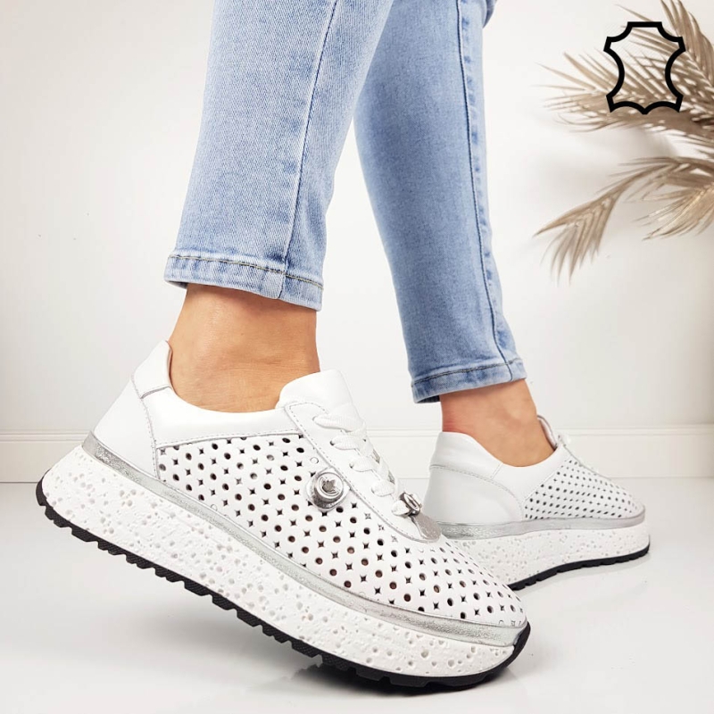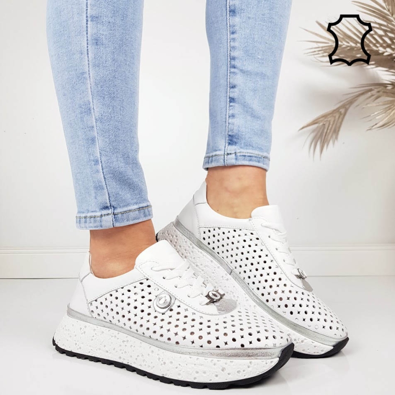 Обувки от перфорирана естествена кожа- Krina White 11794