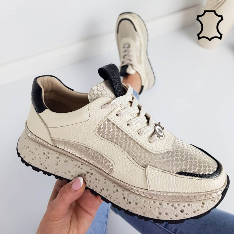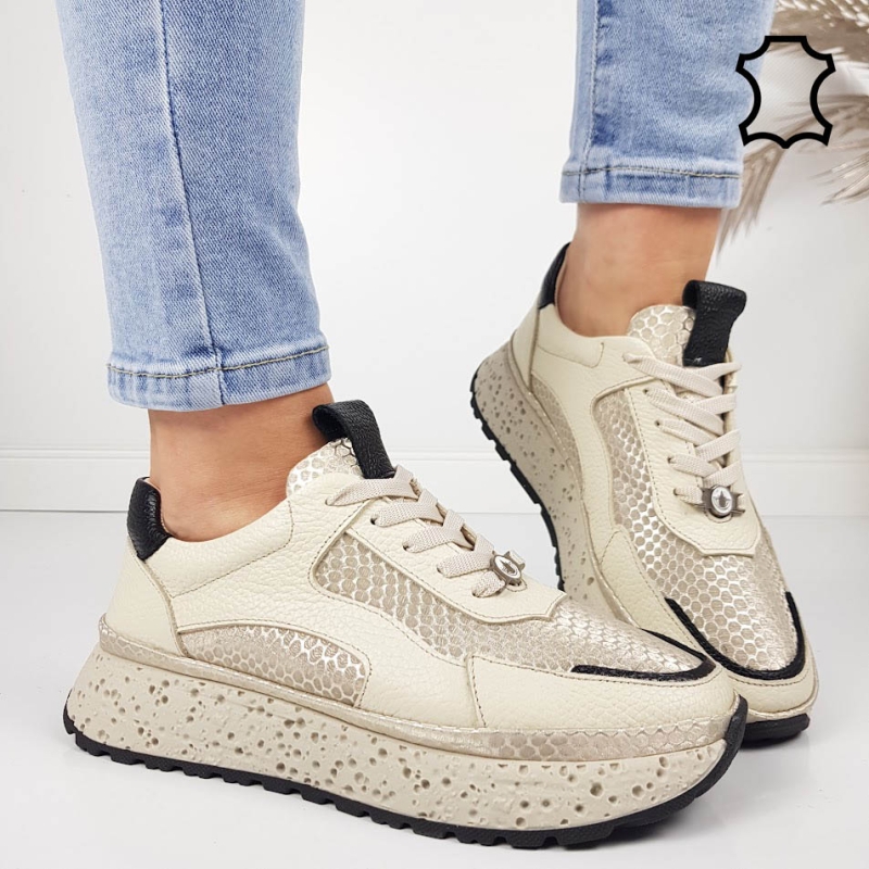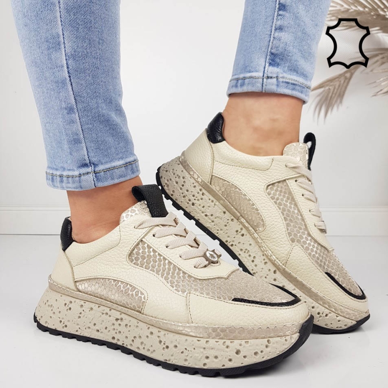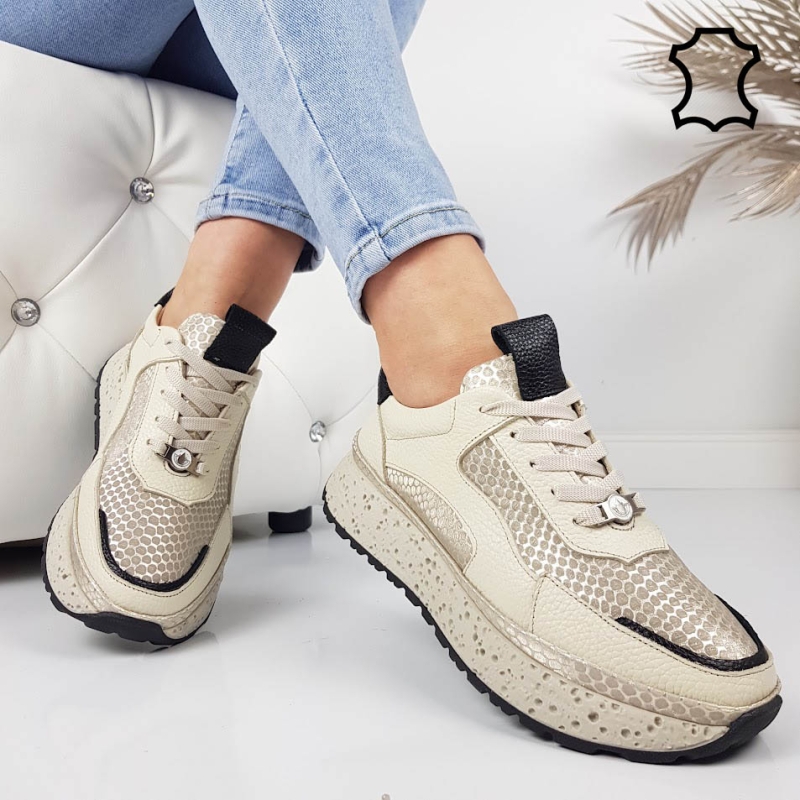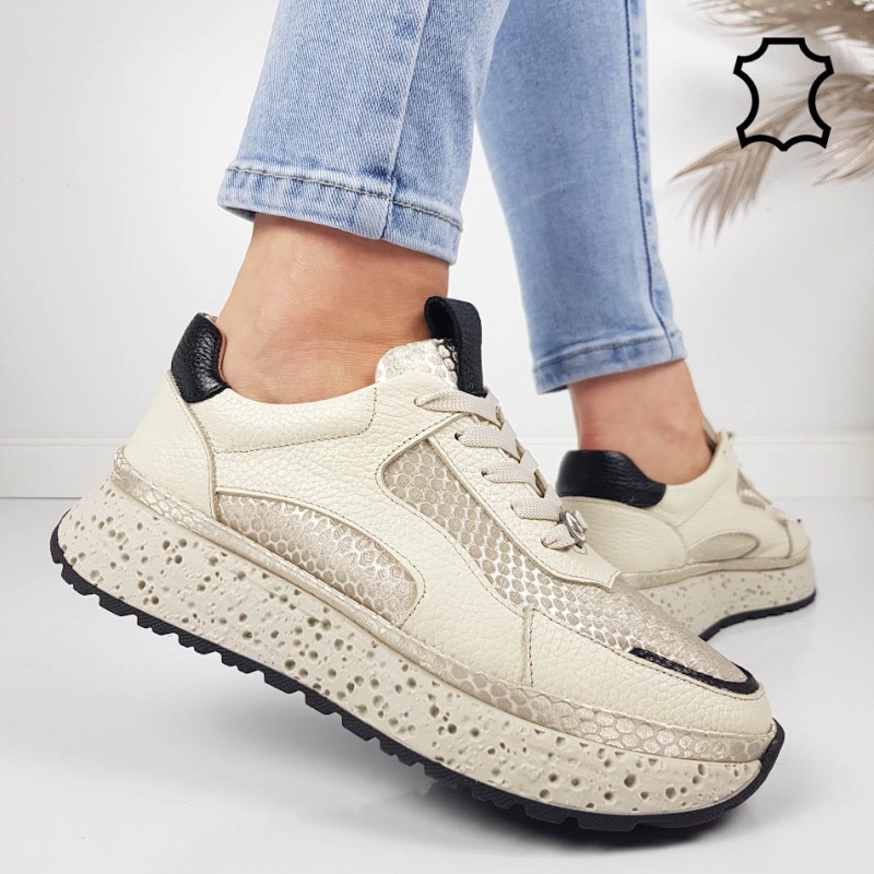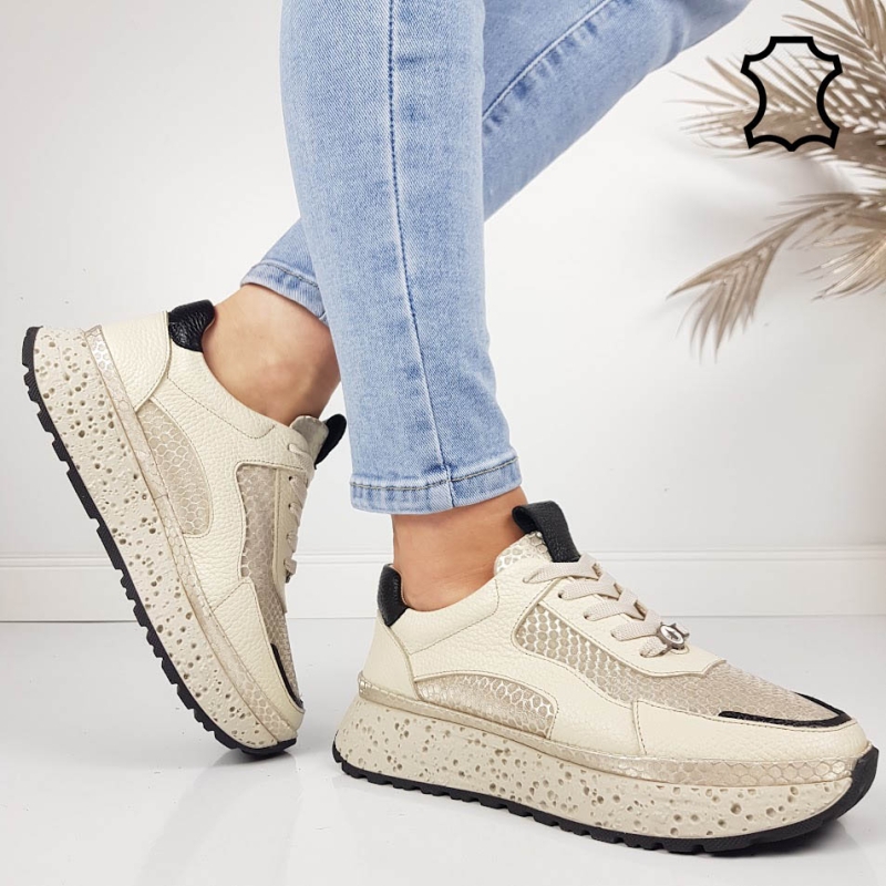 Бежови сникърси от естествена кожа- Nora Beige 11805