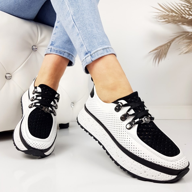 Обувки бяло с черно от естествена кожа- Naomi White 11809