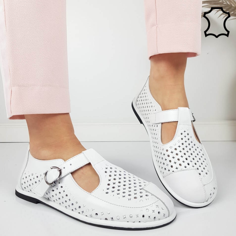 Мокасини от перфорирана естествена кожа- Zina White 11818
