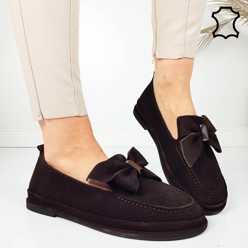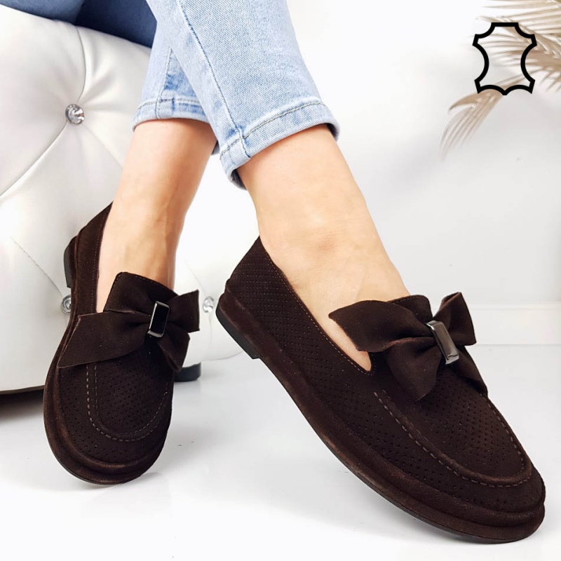 Мокасини от естествен велур в цвят шоколад- lina 11825