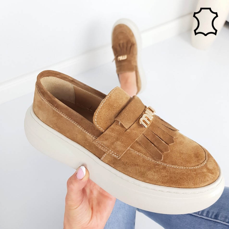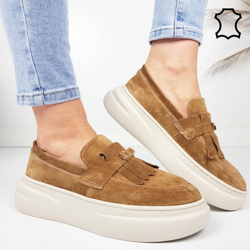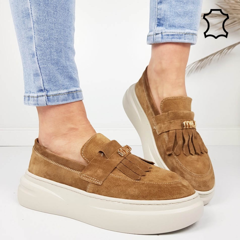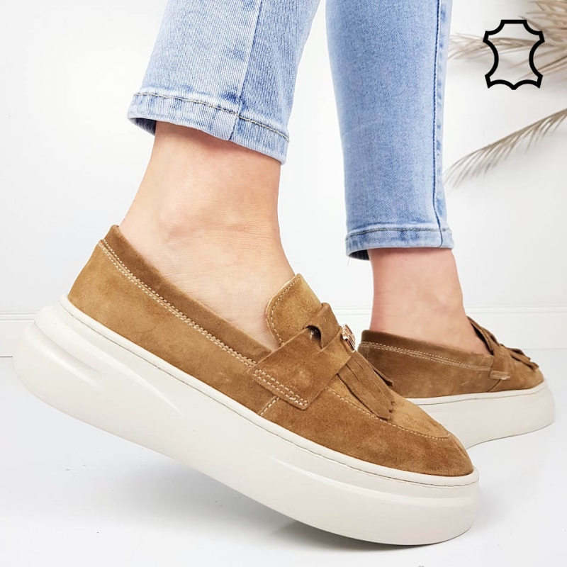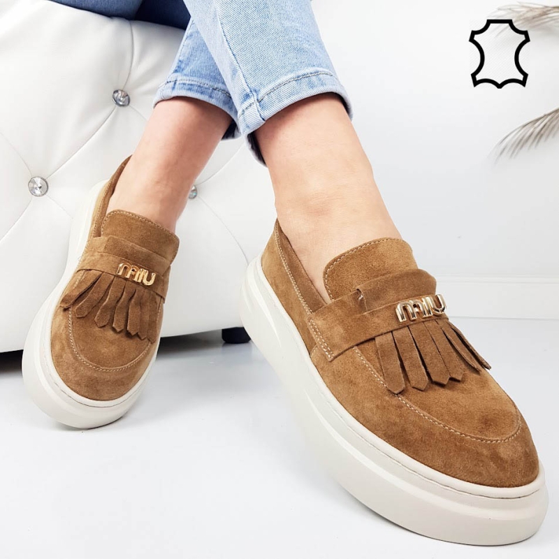 мокасини от естествен велур в кафяв цвят- Vera Brown 11923